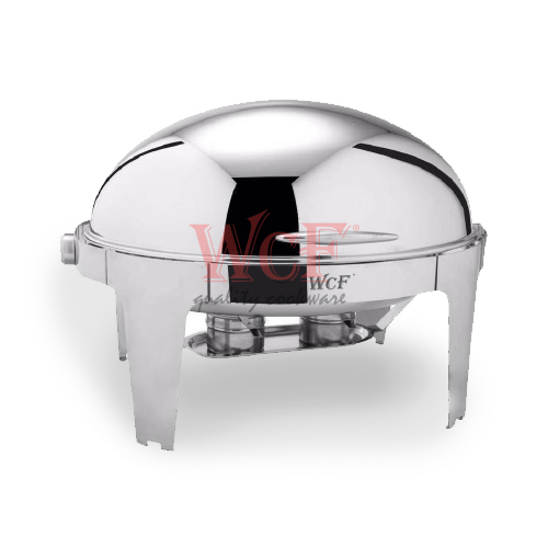 S/STEEL ROUND ROLL-TOP CHAFING DISH with GLASS LID